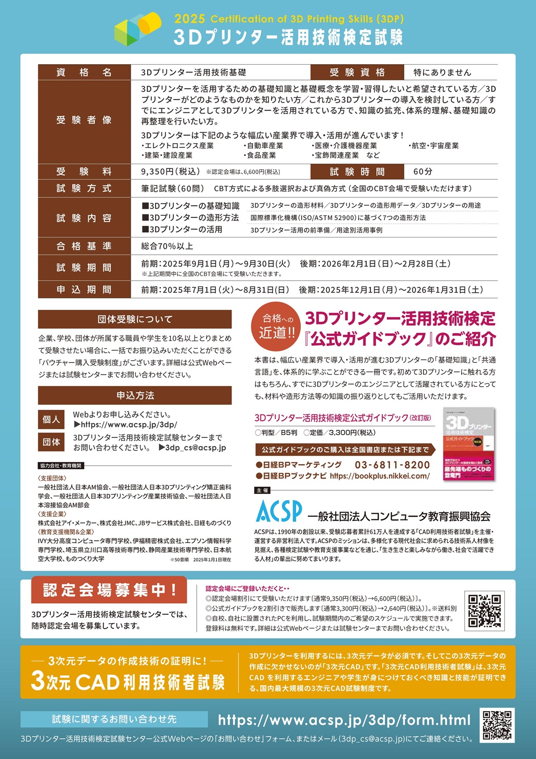 【3Dプリンター活用技術検定試験・2025年度試験ご案内】